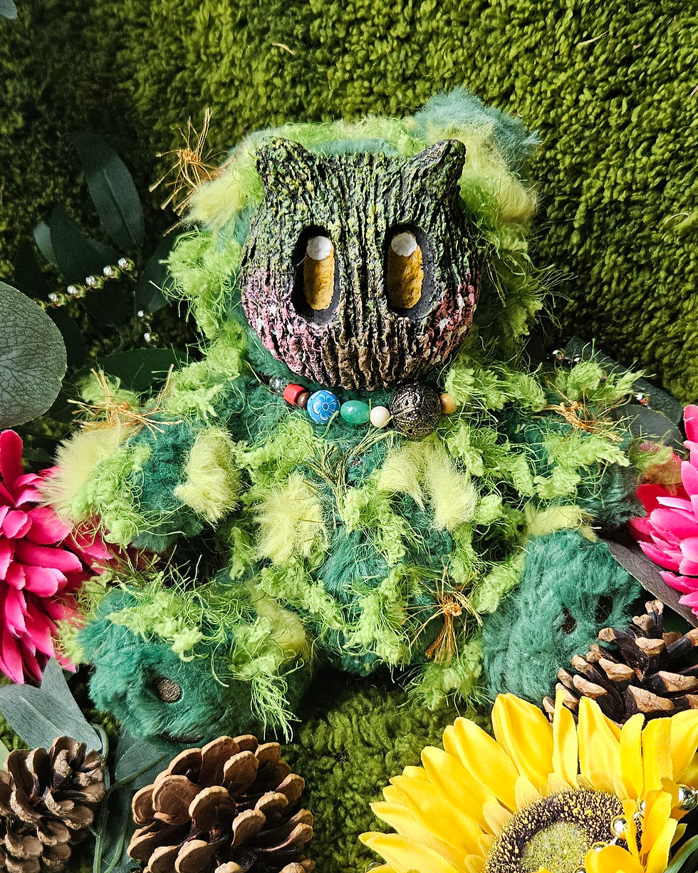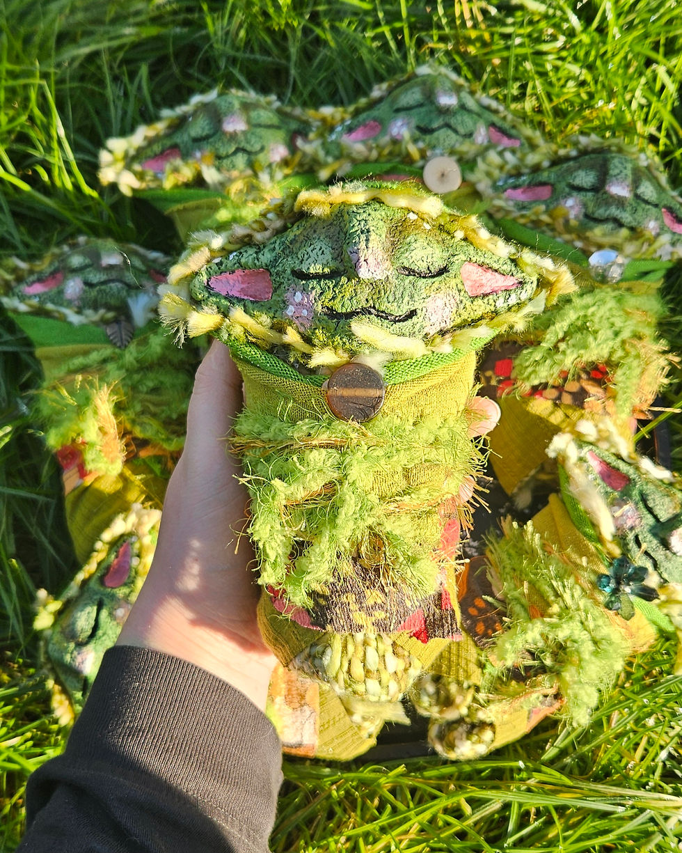 All items are sculptures are handmade by MOG, so no two pieces will be the same. The sculptures are made from cardboard and glue with a small amount of sealant on the outside. Please keep them away from water and moisture!